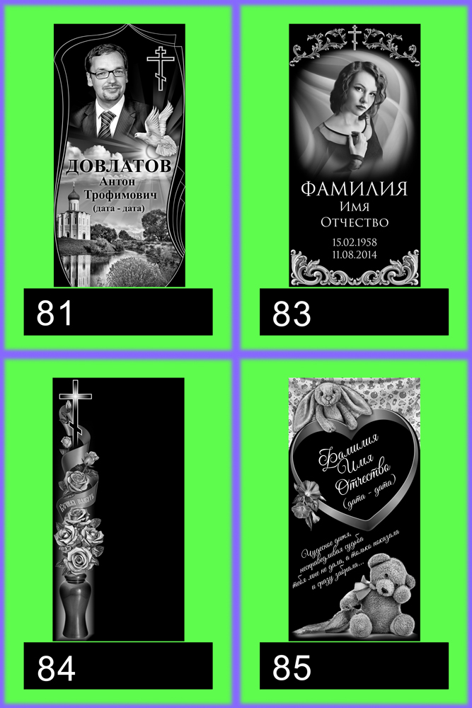 Фото и надписи надгробного памятника входят в общую стоимость, которая указана в каталоге.